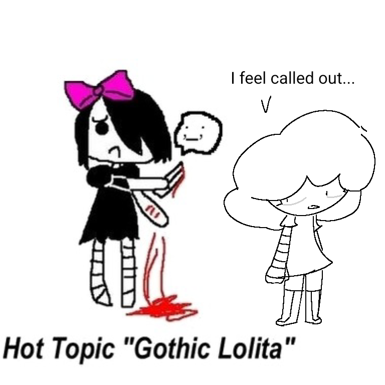 >>55865>Gothic LolitaI cut myself and pretend my husbandos are comforting me after I do