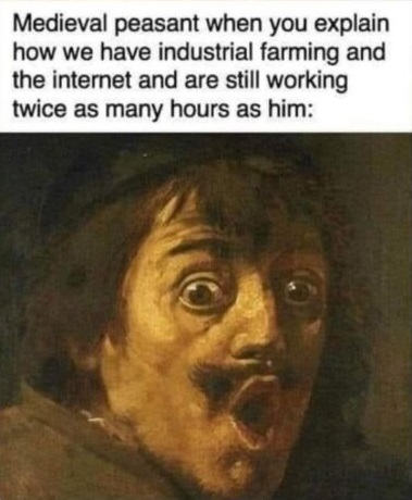 >>129176Sweet summer child, you are underestimating the wast difference between productivity levels then and now. Thing is, when productivity rises so do taxes, so that plebs can never rise up, no matter how advanced technology gets. On the contrary, technology enables a tighter grip on the masses.